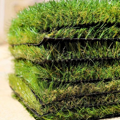 - Durabilité — Une pelouse synthétique de qualité dure 15 à 20 ans sans perte esthétique notable, contre 2 à 3 ans pour une pelouse de placage.